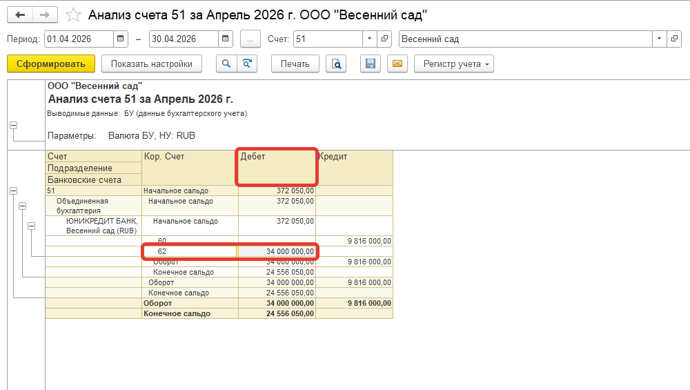Формирование бухгалтерского отчета по 51 счету «Анализ счета 51»